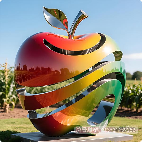 这座熠熠生辉的不锈钢彩色苹果雕塑傲然矗立在农业园中央广场,其镜面抛光的金属表面在阳光下折射出璀璨的虹彩,犹如一颗来自未来的科技果实。雕塑采用304食品级不锈钢锻造而成,经过七道手工抛光工序后,艺术家运用高温烤漆工艺为其披上渐变色的外衣——从蒂部浓郁的玛瑙红过渡到果身明快的琥珀黄,最后在底部晕染开一抹翡翠绿,仿佛凝结了四季更迭的斑斓色彩。高达3.6米的抽象造型既保留了苹果经典的轮廓特征,又通过流畅的几何切面赋予其现代艺术张力,当微风拂过时,雕塑内部精密的力学结构会使叶片造型的附属部件缓缓旋转,在光影交错间投射出蝴蝶翅膀般的绚丽光斑。基座镶嵌的LED地灯系统在夜间会模拟月光透过果林的视觉效果,让整个雕塑化作悬浮在夜色中的发光生命体,与周边真实的苹果树林形成虚实相映的生态艺术景观。这件作品不仅象征着农业科技与自然生命的完美融合,其耐候性材质更能抵御极端气候,成为园区传承百年的标志性艺术图腾。
